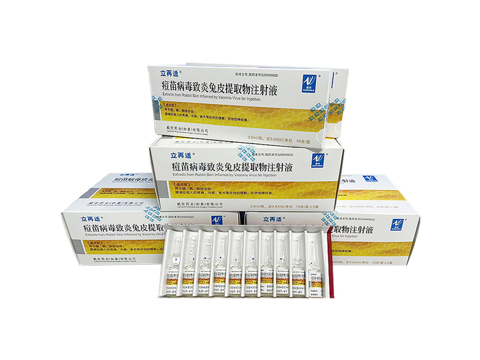 "Extracts from Rabbit Skin Inflamed by Vaccinia Virus for Injection" is a therapeutic biological product produced by Weishi Pharmaceutical (Rugao) Co., Ltd., with the trade name" Lizhishi ". In clinical use, it has been found that this product not only has significant therapeutic effects on neuropathic pain and numbness caused by neurological damage, but also has attracted much attention from the medical community due to its regulatory effect on the immune system. This product is popular among the medical community due to its outstanding efficacy and safety.